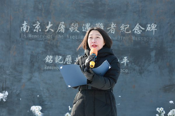 本次活动的发起方多伦多华人团体联合总会主席朱燕女士发表致辞,她说:”南京30万无辜生命的消逝,是人类文明必须记录的警示;以白求恩精神为纽带的中加友谊,应由青年一代继续传承;必须让后代认识,和平并非从天而降,而是以先辈生命换来。“ 所以,她提出了三个“绝不能”,绝不能让历史“失声”、绝不能让精神“断代”、绝不能让后代“遗忘”。