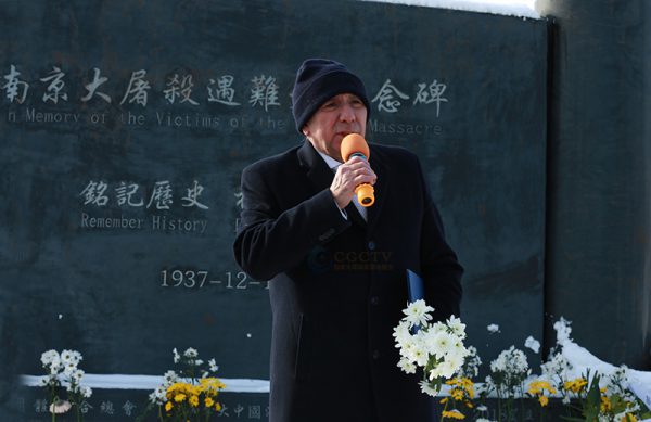 悼念仪式现场气氛庄严肃穆。与会人员向南京大屠杀遇难者敬献花圈和鲜花,并集体默哀,表达对逝者的深切哀悼与追思。加拿大朗诵艺术团为大家诵读南京大屠杀遇难者公祭文,白色菊花寄托着对历史的铭记,也传递出珍爱和平、反对战争的共同心声。