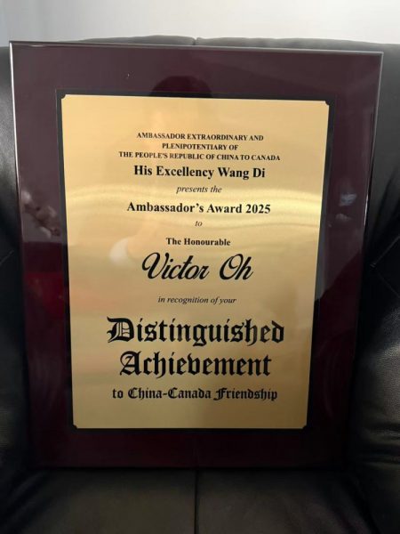 加拿大前参议员胡子修获颁中国“大使奖” 以表彰其促进中加友好突出贡献