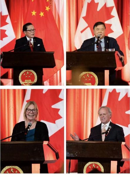 他还说:中加友好事业是一年接着一年干,一代接着一代干的事业。我们要以所有获奖者为榜样,从他们的精神和行动中汲取力量,继续发扬光大中加友好,继续呵护深化中加友谊,继续巩固拓展中加合作,为两国老百姓带来更多实实在在的利益。我也相信,未来一定会涌现出更多像今天获奖者一样支持中加友好的杰出人士。