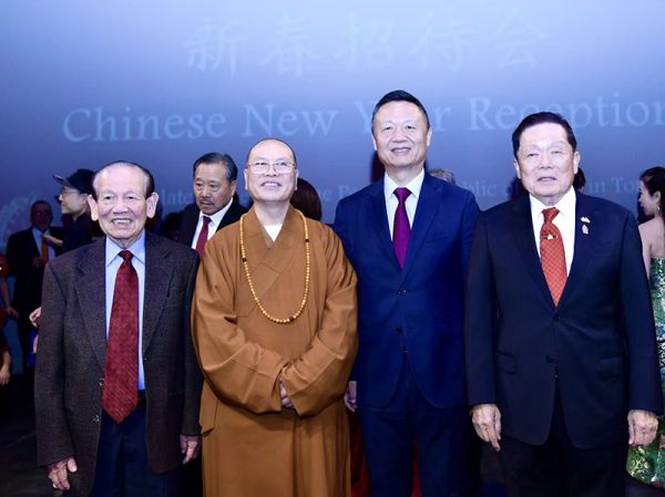 500多位嘉宾参加新春招待会,气氛热烈,侨界代表争相与政要合照。