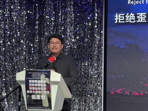 张俭强调,近年日本右翼势力及军国主义思潮有所回潮,日本政要涉台言论更是冲击战后国际秩序。他呼吁海外华人团结一致,坚决反对历史修正主义和任何形式的战争挑衅。“历史不能被遗忘,正义不能被沉默。”他说。