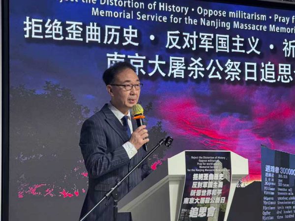 中国驻多伦多总领馆政新领侨处负责人张超峰领事在发言中表示,南京大屠杀是真实且被国际社会公认的历史事实,不能因时间流逝而被淡忘。他高度肯定安省与万锦市议会先后通过的南京大屠杀纪念日动议,以及大多伦多地区纪念碑的落成,称这是华社持续努力的成果。