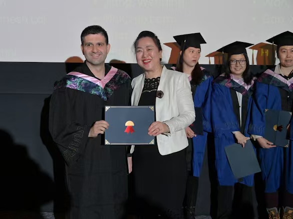 本次典礼安排紧凑而饱含亮点:教师代表轮番致辞、毕业证书颁发与优秀毕业生分享环节相得益彰。来自两校的优秀毕业生 Nickola Lukich、张晓峰(Xiaofeng Zhang)、Muskan Muhi、与刘晨曦(Chenxi Liu)分别上台分享他们在学期间的成长故事与就业经验,生动呈现学院以“技能+实战”为导向的教学成效。钢琴调音专业、按摩、PSW、以及烹饪等多个专业的教师团队和学校的教职员工也在台上为毕业生送上职业建议与鼓励,现场氛围温馨而振奋人心。