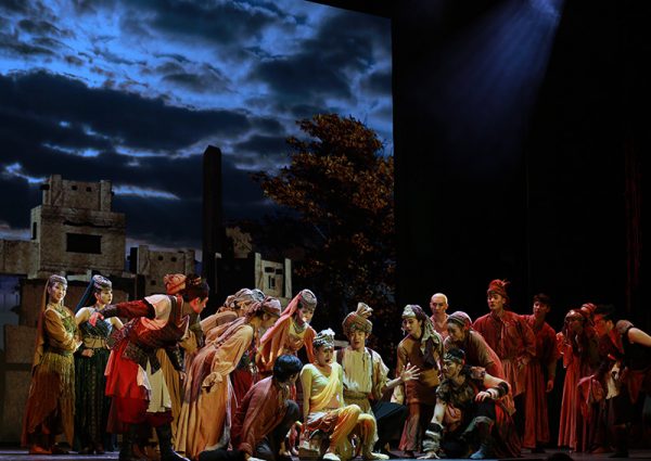 剧中丰富多样的舞蹈语汇成为当晚演出的亮点,极具巧思的夜宴“灯舞”尽显精绝古城的繁华盛景,融合街舞与踢踏舞的“蹦迪”舞段将集市烟火气演绎得鲜活生动,曾亮相央视春晚的“锦绣”舞段更是惊艳全场。舞台视觉与灯光设计为观众构建出沉浸式的时空意境,服饰造型复刻汉代织物的纹样与色彩,衣袂翻飞如流动的织锦。悠扬婉转的主题曲《毋相忘》,与剧情节奏精准契合,既勾勒出古丝绸之路的辽阔意境,又展现了剧中人物间的情感羁绊。120分钟的演出中,织锦护臂作为命运与共的象征贯穿始终,为现场观众铺展开一幅跨越千年的民族交融史诗画卷。