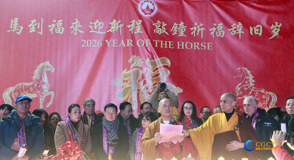【多伦多湛山讯】2026年2月16日丙午除夕之夜,在加拿大多伦多的湛山精舍内灯火辉煌。由加拿大佛教会主办的马年除夕敲钟祈福盛典在多伦多湛山精舍隆重举行。