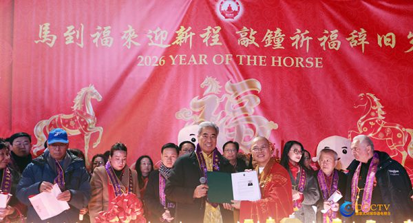 活动现场人潮涌动、秩序井然。信众依次敲响新岁第一声钟鸣,为家庭幸福、社会和谐、世界和平祈愿祝福。钟声悠远回荡夜空,象征着希望与新的开始,也彰显了春节文化在加拿大社会的深远影响与蓬勃活力。