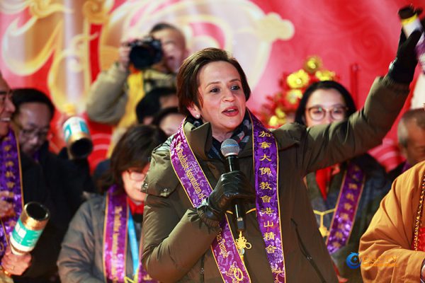 万锦市市长薛家平Frank Scarpitti致辞说:表扬湛山精舍致力于传承与弘扬中华文化和精神传统,成功举办鸣钟祈福典礼。市长肯定湛山精舍的领导力,让社区在反思、祈愿中更加团结,弘扬和平、繁荣与和合精神。感谢湛山精舍积极推动文化多元、促进社区参与与心灵成长。