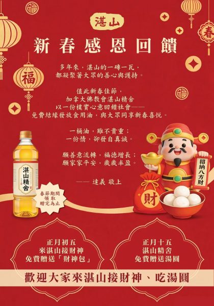 马年已至,春天也快到了。达义大和尚表示,未来不论是加拿大佛教会还是加国五台山,将继续肩负文化传承与社会服务的双重使命,让春节这一中华民族最重要的传统节日,在加拿大这片土地上持续焕发光彩。愿钟声所至,世界和平;愿慈光普照,人间吉祥。加拿大佛教会恭祝大家马到福来,身心康泰,万事如意!